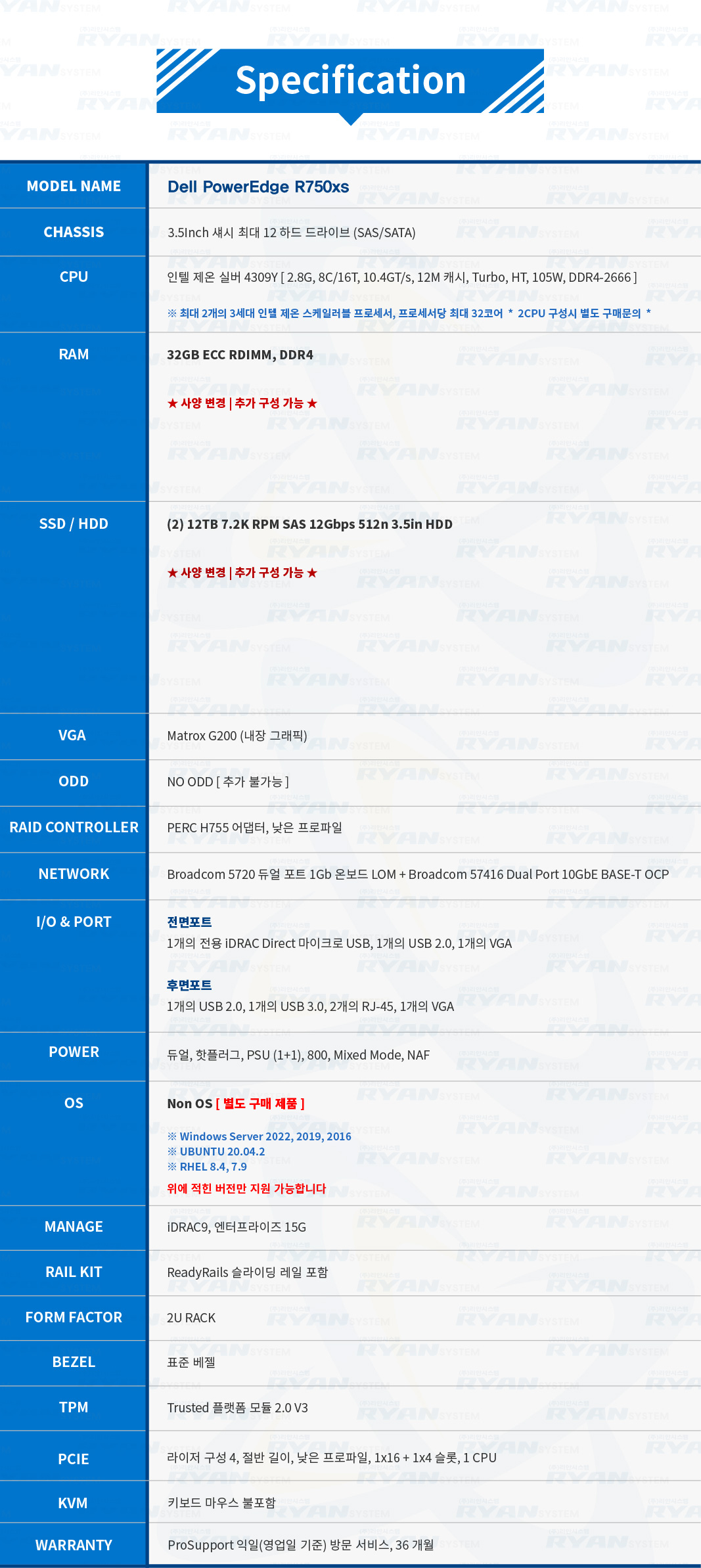 이미지 확대보기Dell R750xs 12Bay S4309Y 32G/SAS 12TBx2 7.2K/B